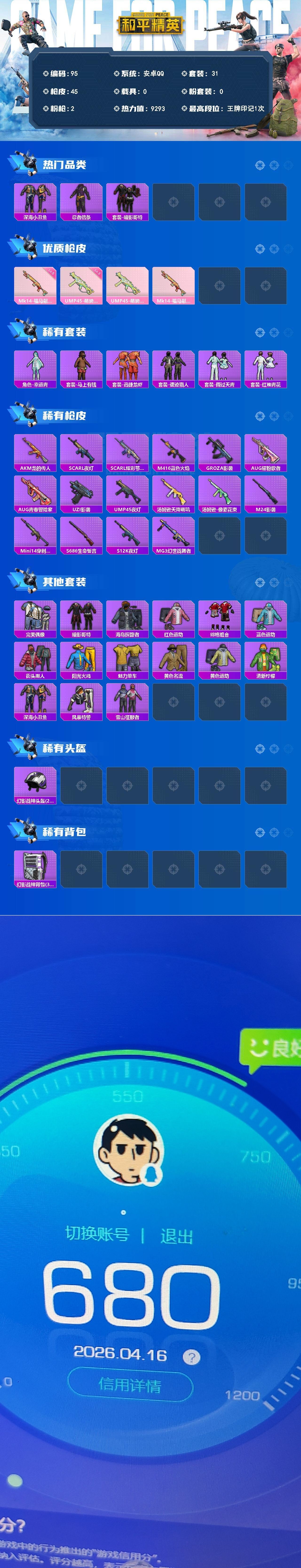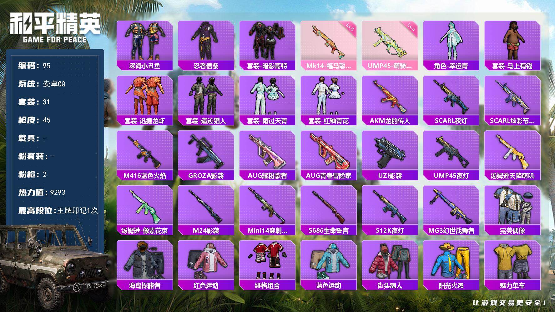游戏区服:和平精英 / 安卓系统 / QQ账号