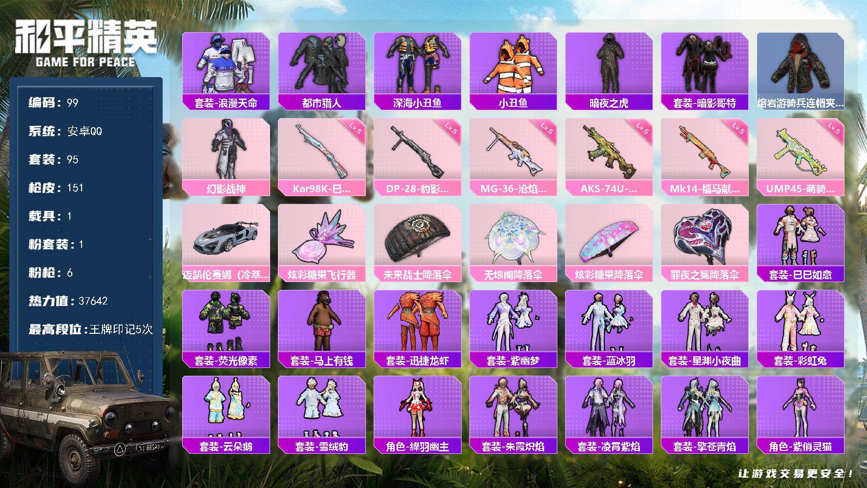 游戏区服:和平精英 / 安卓系统 / QQ账号