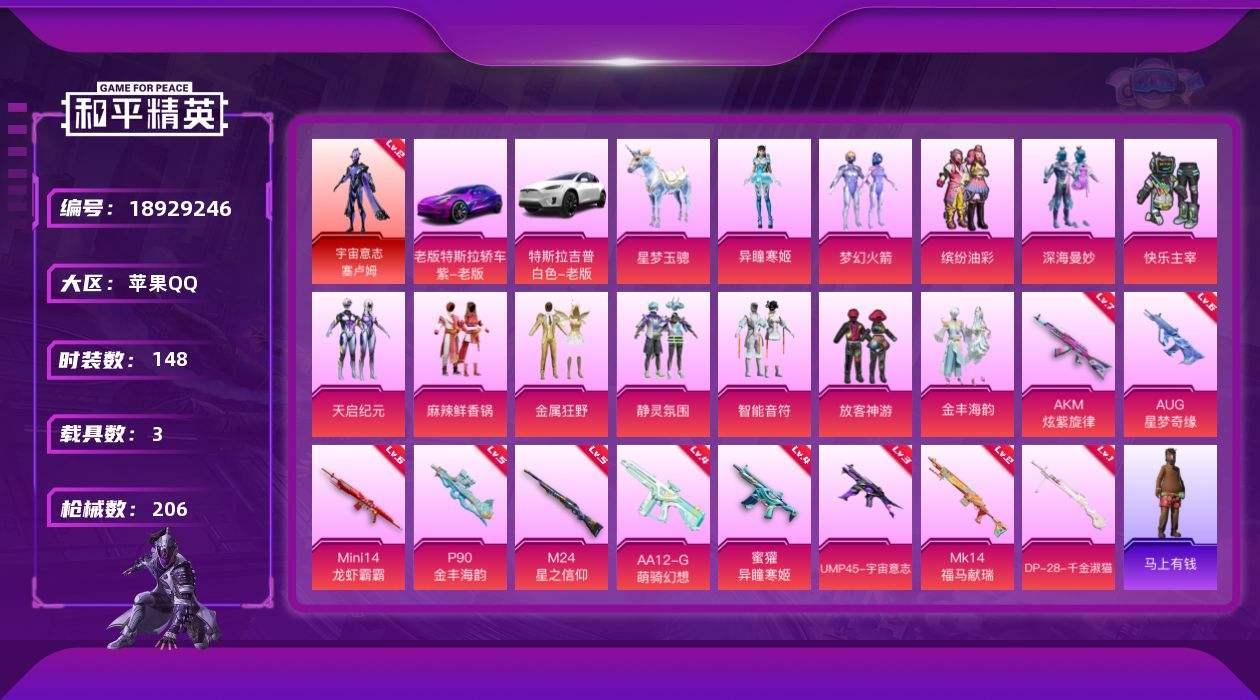 【701968】【可二次】【苹果QQ】深海曼妙 特斯拉X白色 金属狂野 天启纪元 AKM-炫紫旋律 放客神游 快乐主宰 Mini14-龙虾霸霸 梦幻火箭 静灵氛围 特斯拉3紫色 麻辣鲜香锅 缤纷油彩 智能音符 暗夜武装 M24-星之信仰
