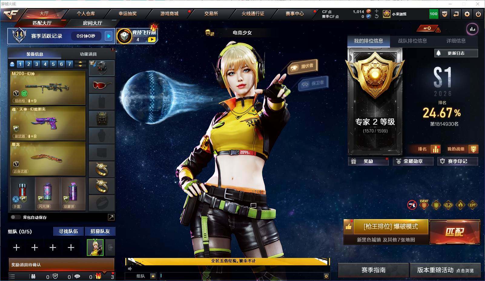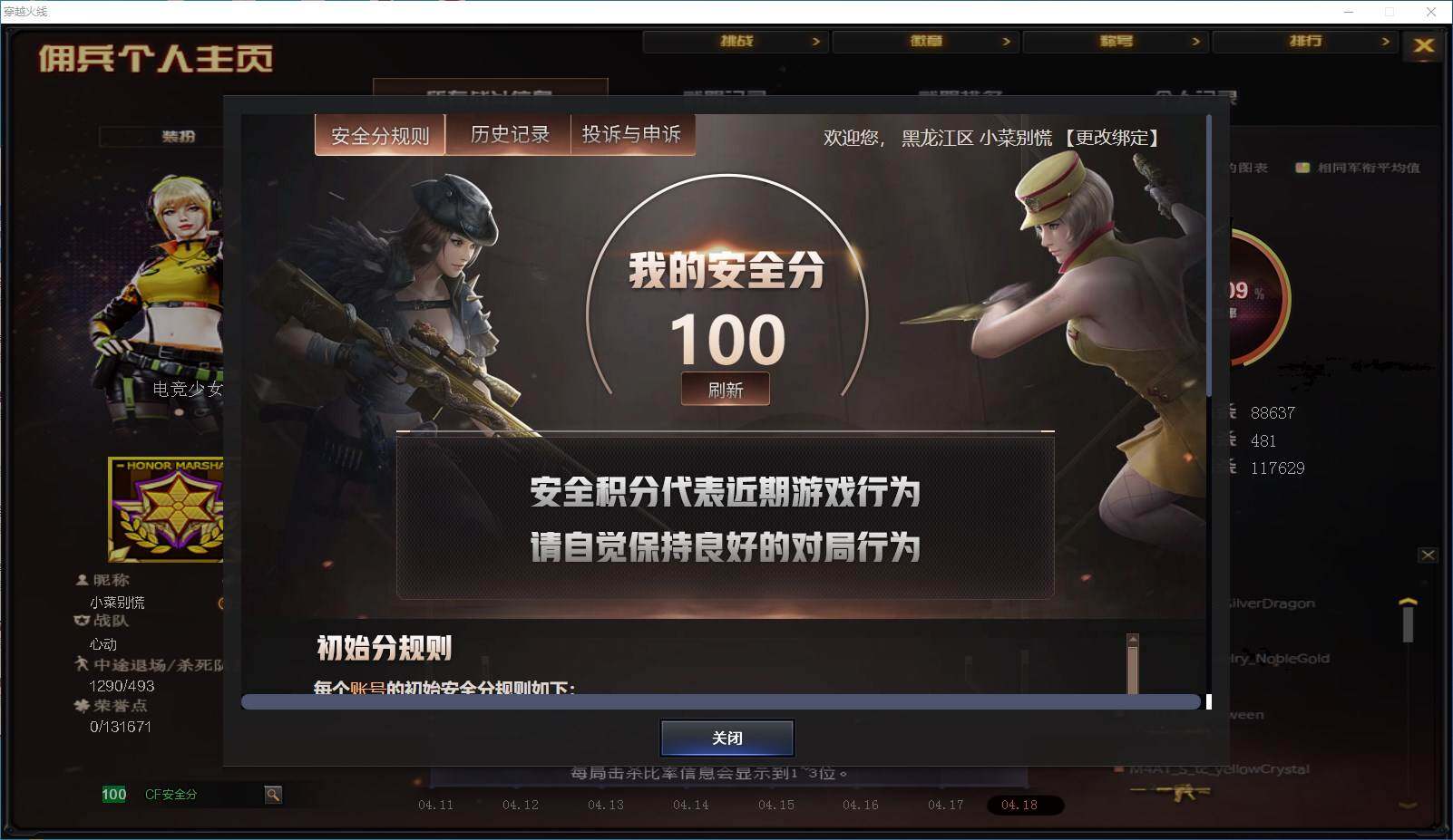 游戏区服:穿越火线 / 北部战区 / 黑龙江一区互 通
